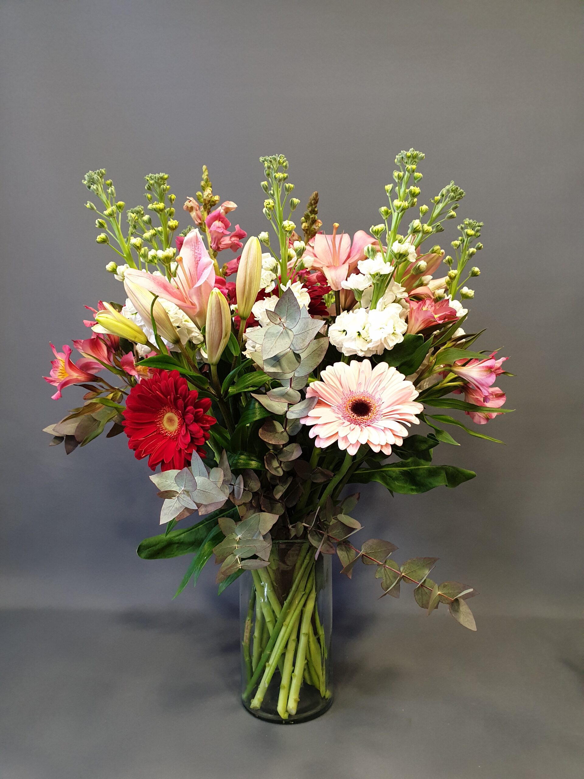 A stunning bouquet that whispers romance with every bloom. Made with lilies, gerberas and alstroemerias.