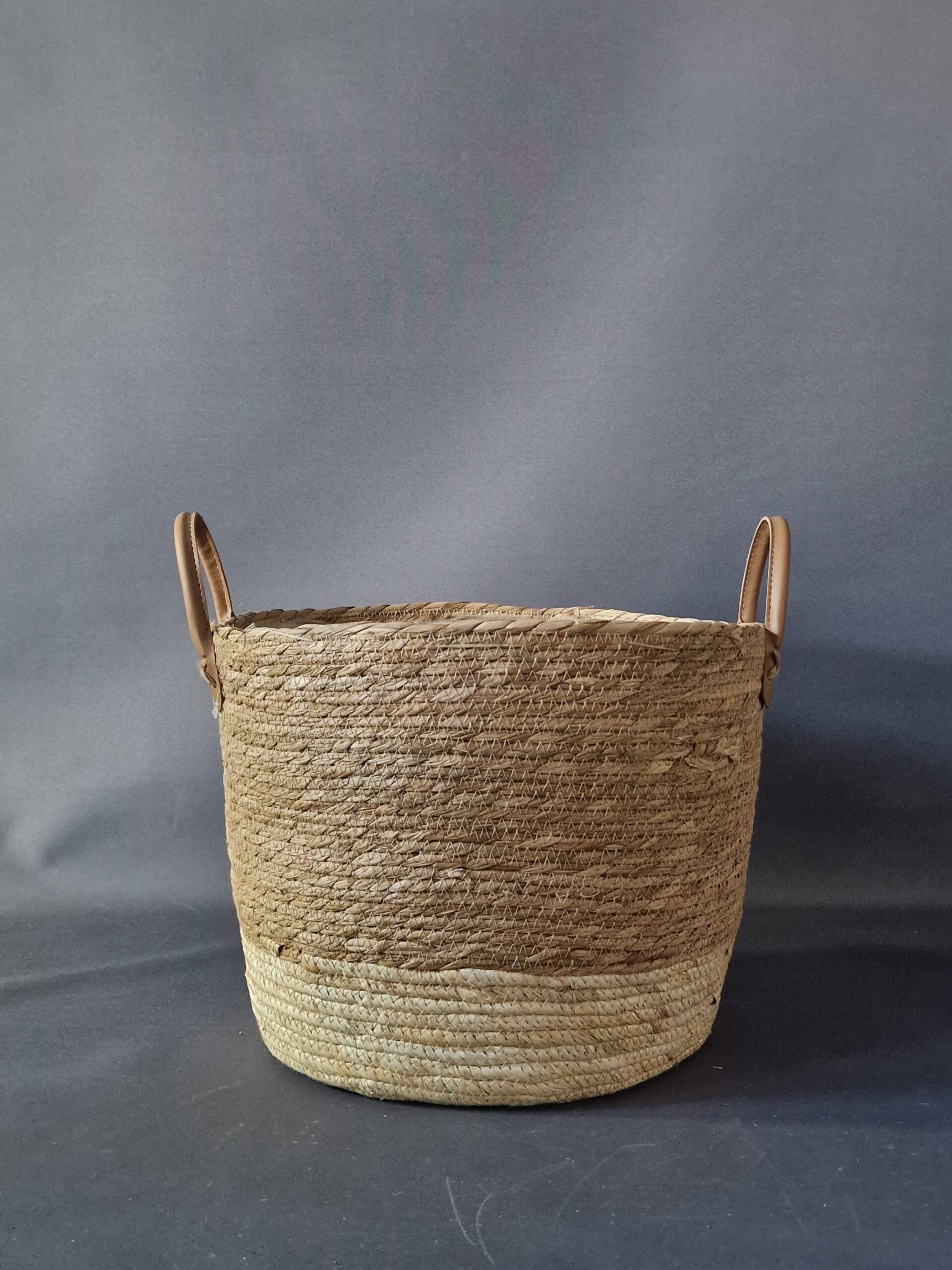 Beige wicker basket.