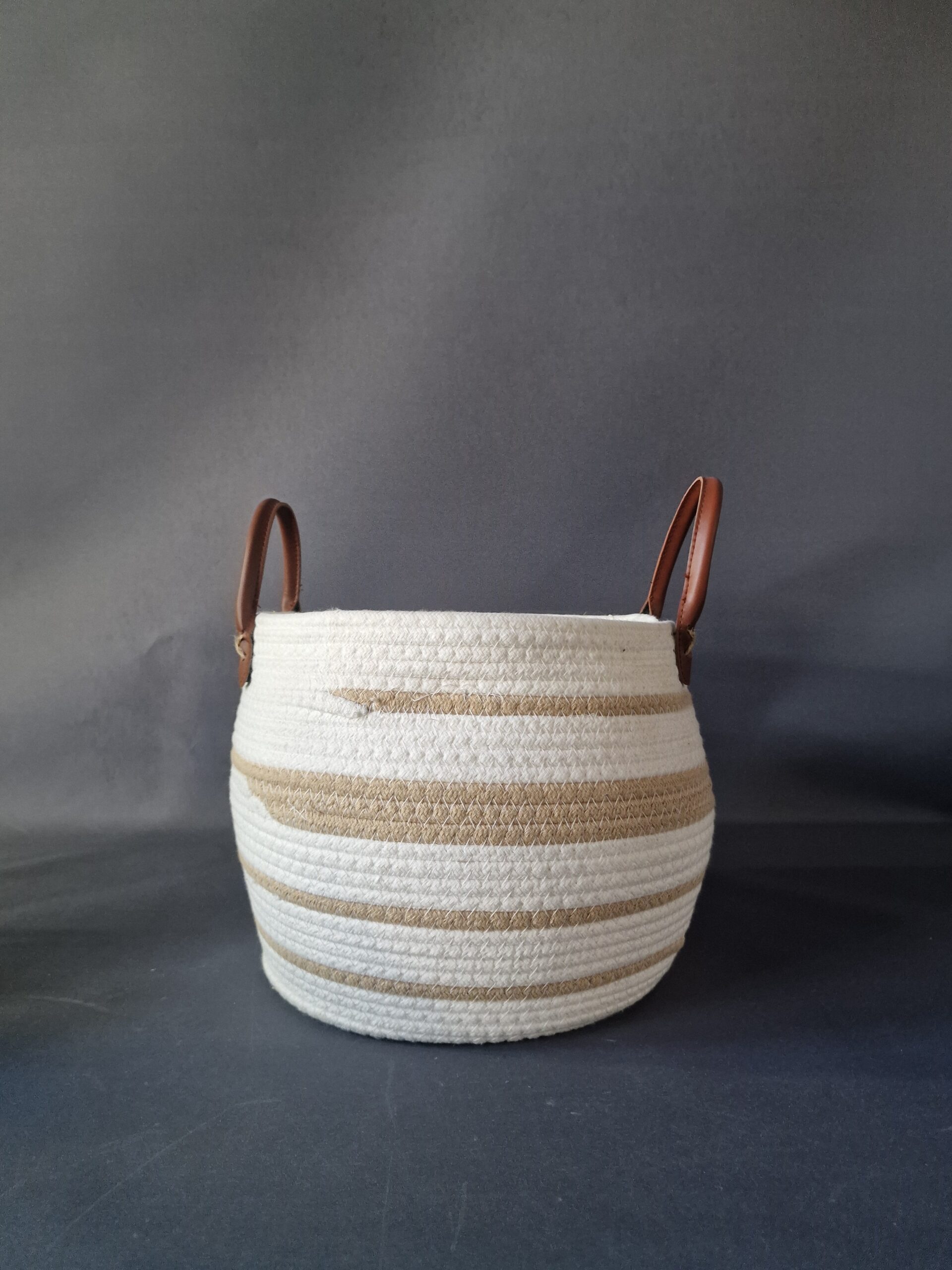 Καλάθι με πλέξη σε λευκό και μπεζ χρώμα.
