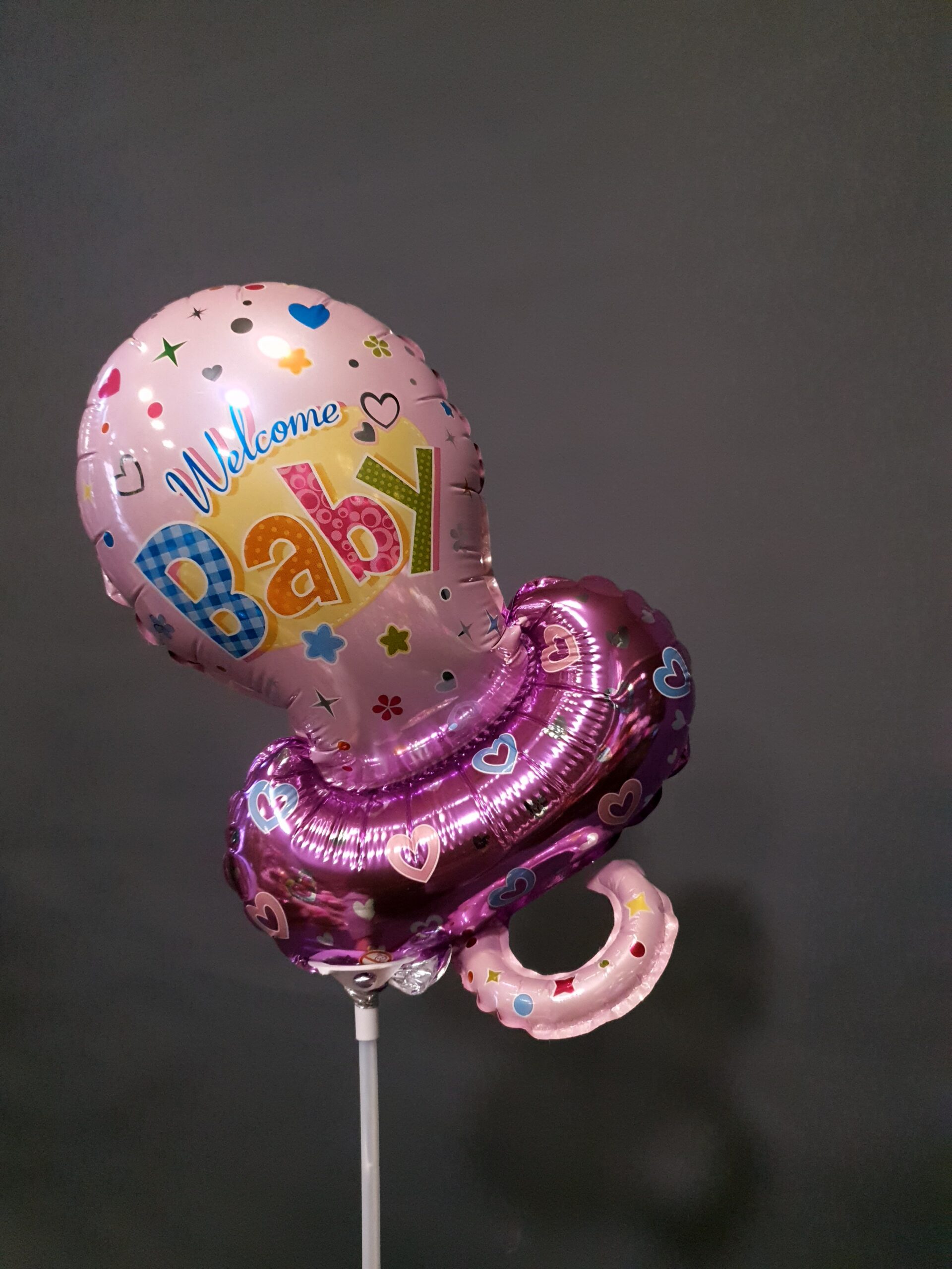 Μπαλόνι σε σχήμα πιπίλα με ροζ χρώμα ‘welcome baby’ για κορίτσι.