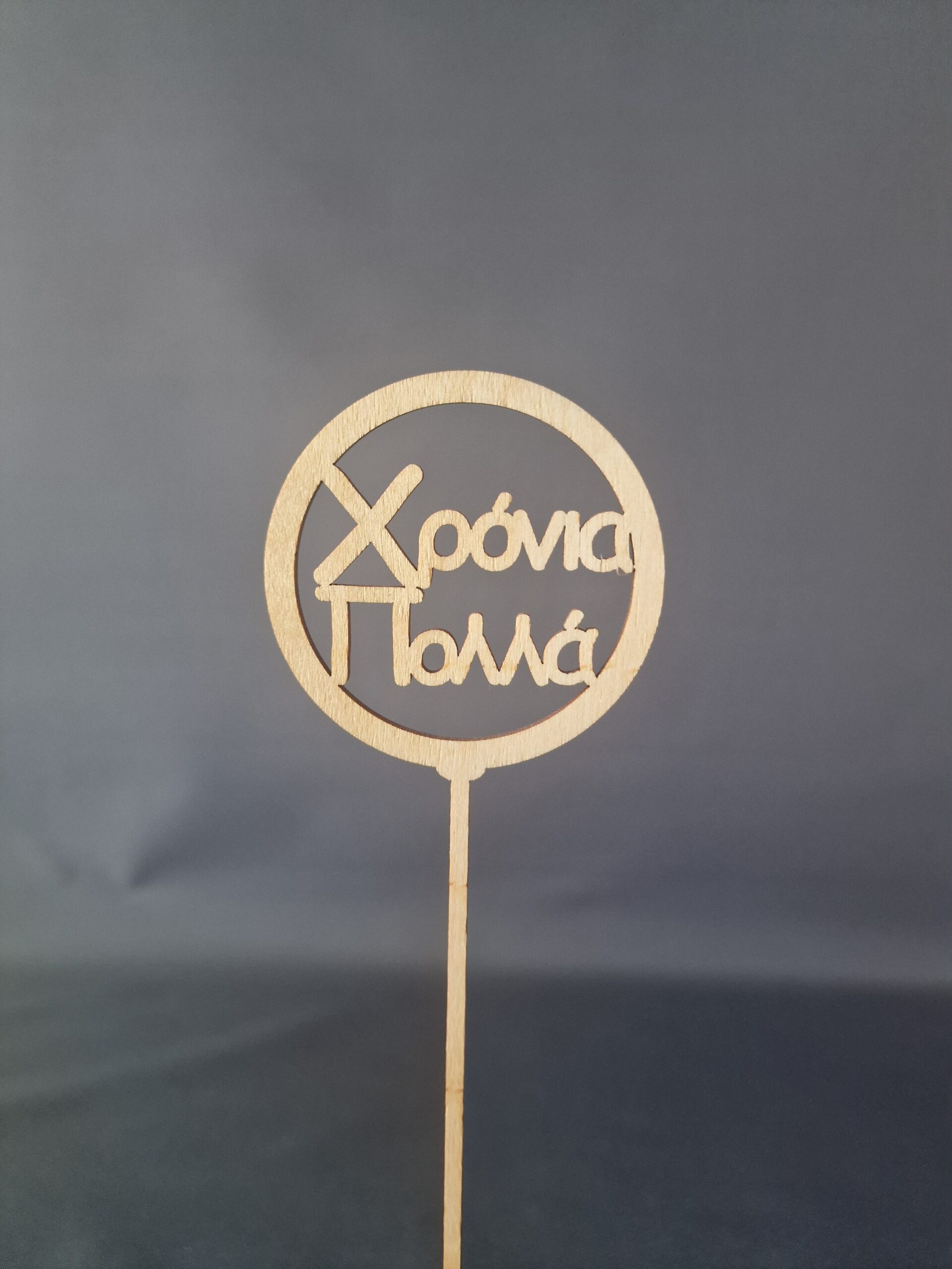 Διακοσμητικό ξύλινο stick ‘χρόνια πολλά’, το οποίο μπορεί να προστεθεί σε ένα μπουκέτο ή μία σύνθεση από λουλούδια.