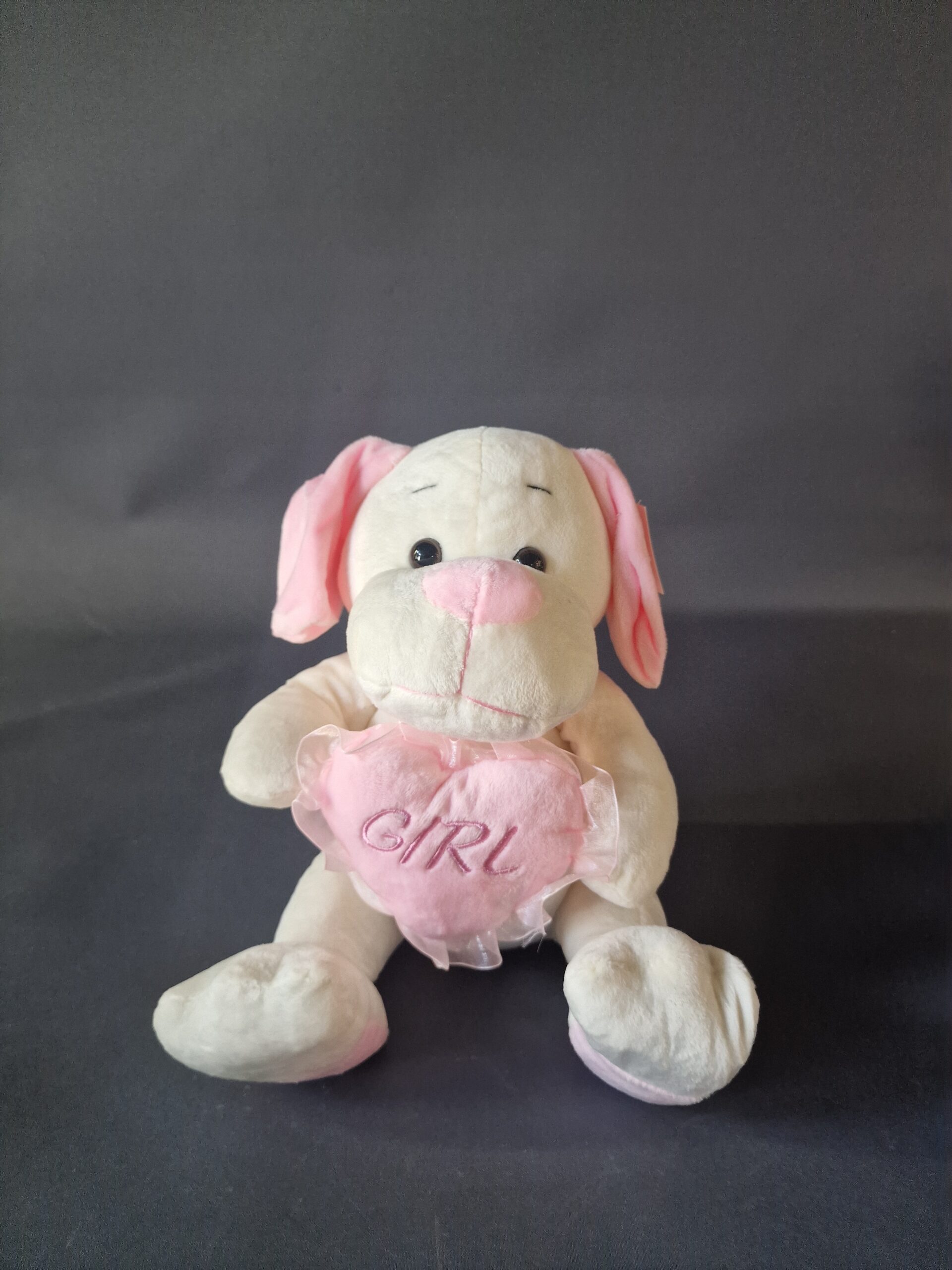 Λούτρινο σκυλάκι σε λευκό χρώμα με ροζ καρδιά για κορίτσι ~ 25εκ.