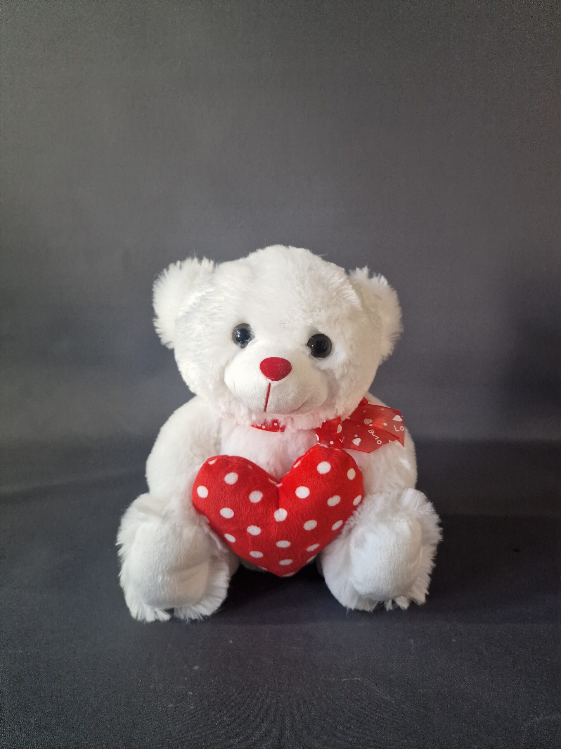 Λούτρινο αρκουδάκι σε λευκό χρώμα με κόκκινη καρδιά ~ 25εκ.