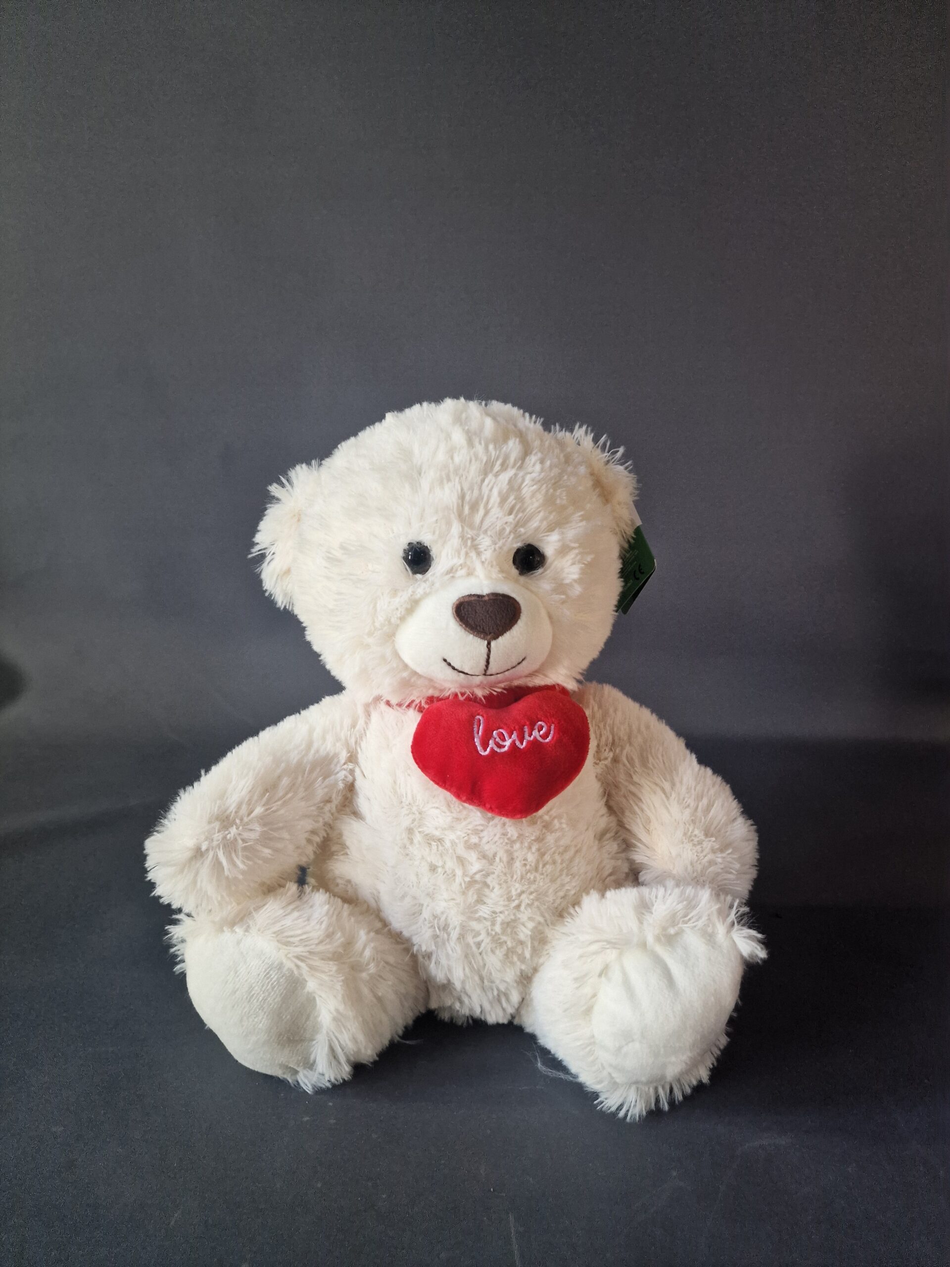 Λούτρινο αρκουδάκι σε λευκό χρώμα με κόκκινη καρδιά ~ 30εκ.
